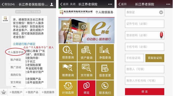點擊菜單欄“我的賬戶”—“個人服務(wù)平臺”,進(jìn)入個人服務(wù)平臺主頁,點擊“綁定”,填寫相關(guān)信息,輕松完成賬號綁定!