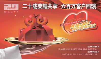 日前,太平洋壽險(xiǎn)營(yíng)銷渠道為迎接司慶20周年,提前部署2011年“開(kāi)門(mén)紅”業(yè)務(wù)競(jìng)賽活動(dòng),推出“太保輝煌20年”系列活動(dòng)。作為首項(xiàng)活動(dòng),全司范圍的“太保輝煌20年?客戶回饋”活動(dòng)即將在今年12月拉開(kāi)帷幕。