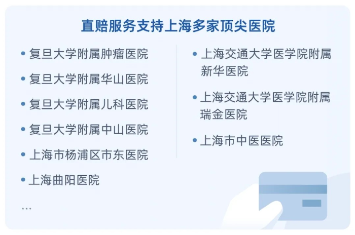 藍(lán)醫(yī)保的直賠醫(yī)院拓展至28家,支持上海多家頂尖醫(yī)院,如復(fù)旦大學(xué)附屬腫瘤醫(yī)院、瑞金醫(yī)院、兒科醫(yī)院、新華醫(yī)院、華山醫(yī)院等等。